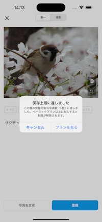 無料プランではビギナーレベル以下の対象種は1種5枚までの写真登録上限を設定させていただきました。ベーシックプランでは(一応全体で5,000枚の上限は設けてますが)1種あたりの制限は解放されます。